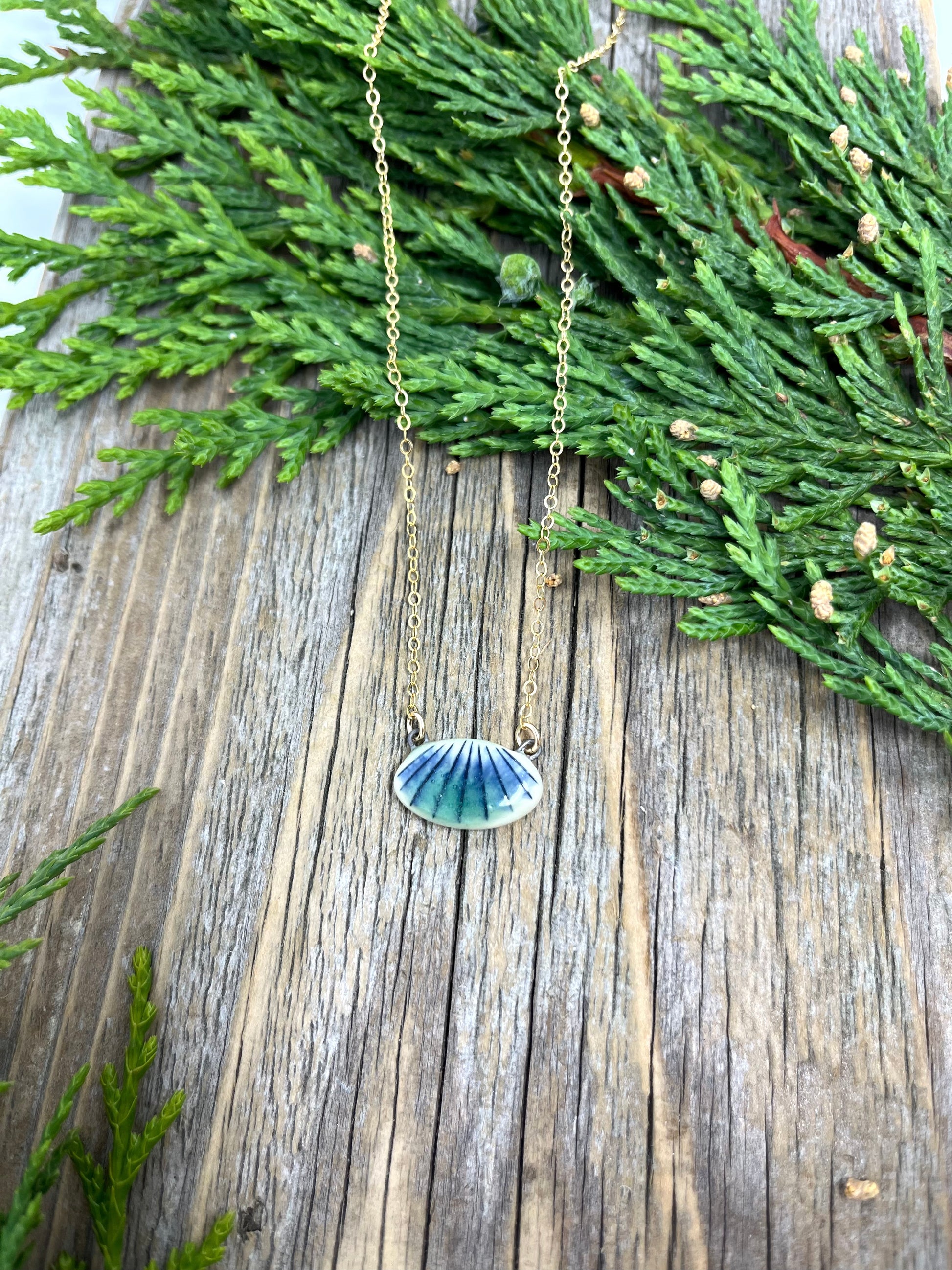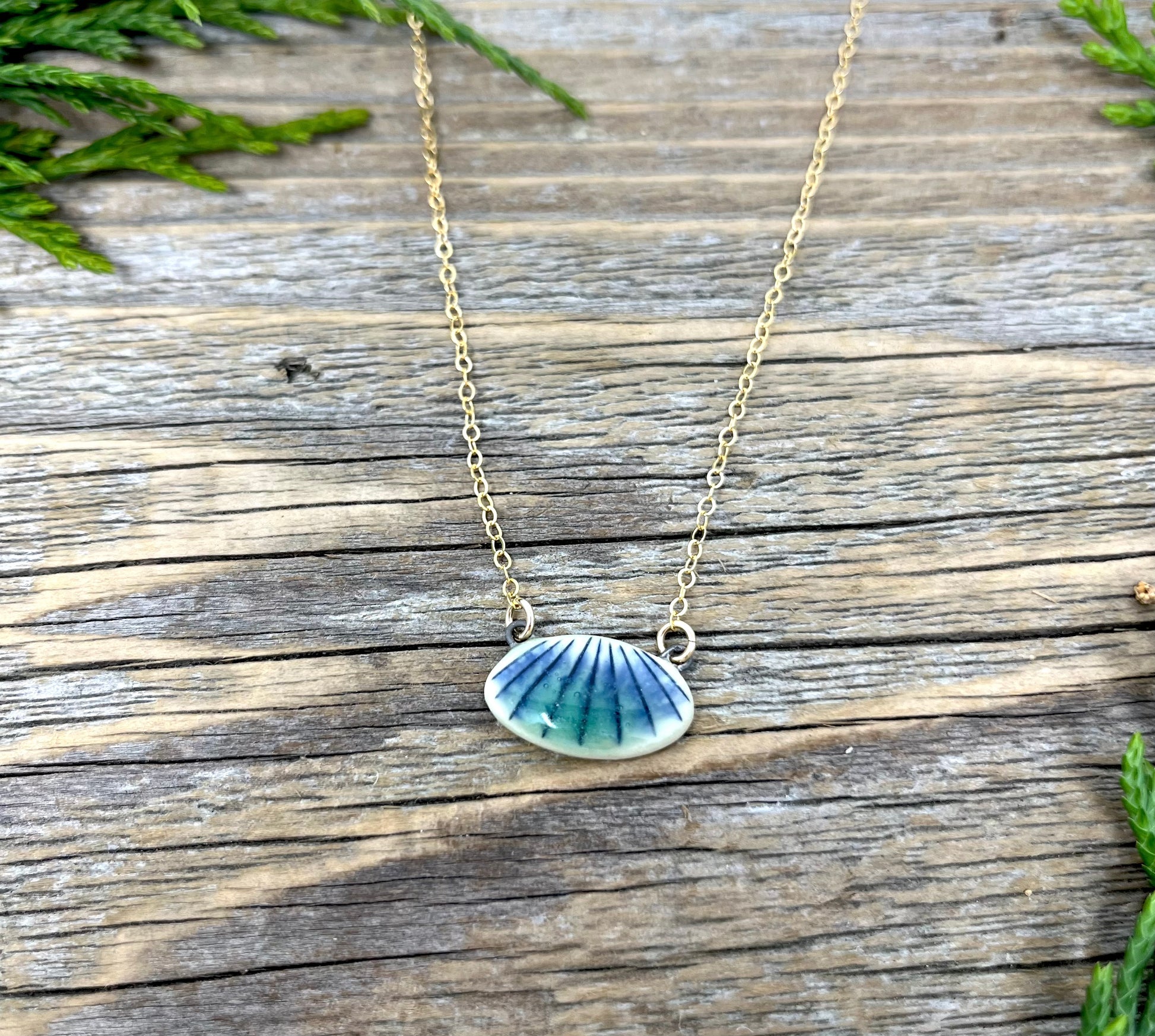 The pendant is glazed in a durable clear glaze, and assembled onto a simple sterling silver chain with a lobster claw clasp and 1" adjustable extender.