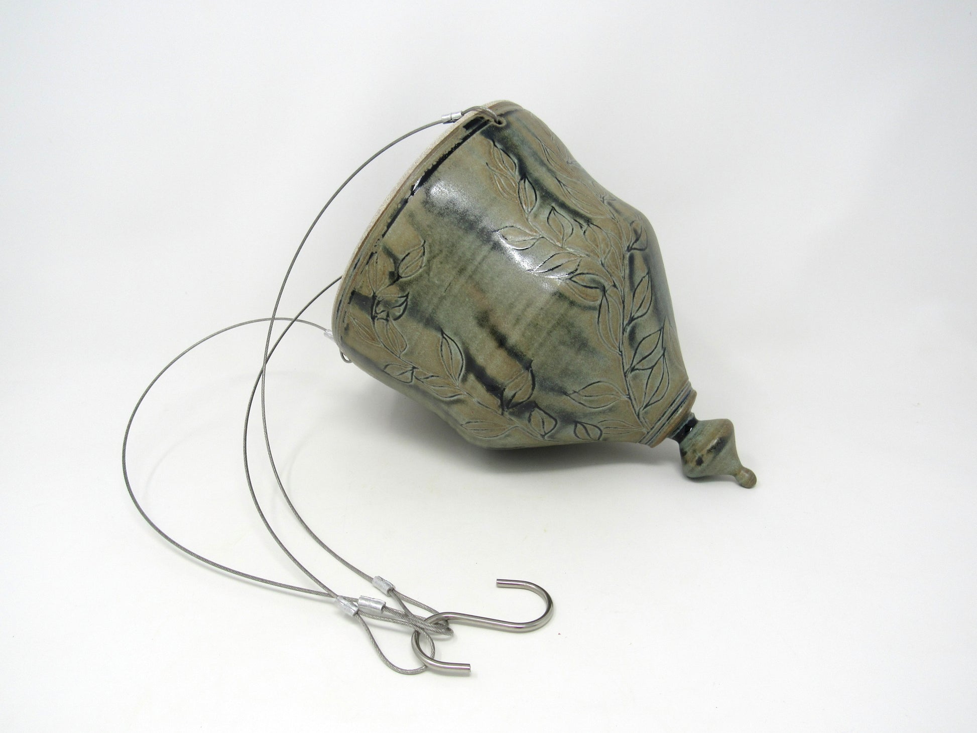 Wheel thrown out of stoneware clay, it has been decorated with a hand carved design of leafy vines, and is glazed in my Blue Ridge glaze.
