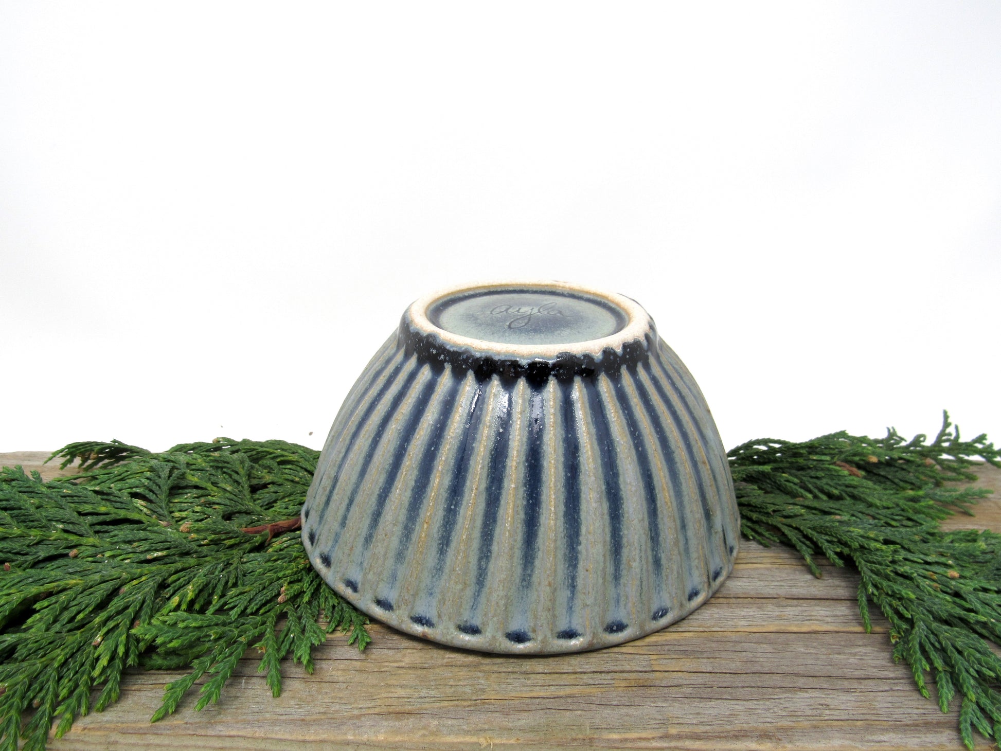 These bowls were hand thrown on the potter's wheel out of stoneware clay. Decorated with vertical carved fluting around the outside, they are glazed in a food-safe Blue Ridge satin matte glaze.