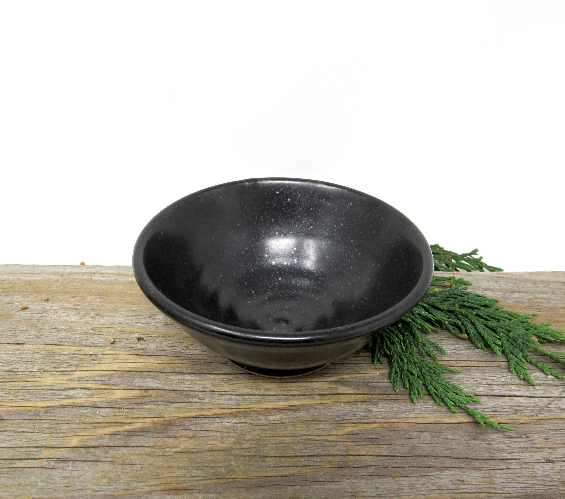 This small bowl was hand thrown on the potter's wheel out of stoneware clay. It is glazed in a matte black glaze.